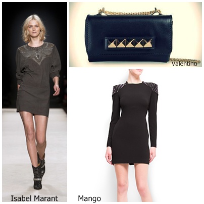Little Black Dress. La tendencia de las “tachuelas” empieza a ser un poco repetitiva porque ya la vimos la temporada pasada, pero en una pieza básica como este vestido de Mango ayuda a darle un look más actual. Lo puedes utilizar a diario con unos botines como el look de Isabel Marant.
