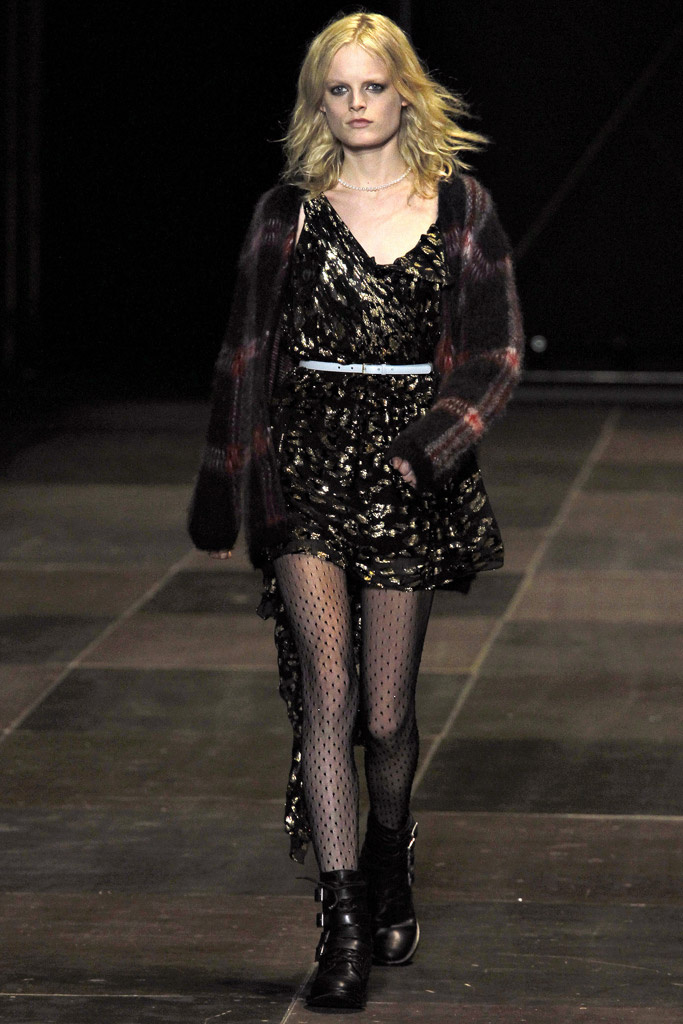 Saint Laurent Paris de la mano de Hedi Slimane ha vuelto a convertir el estampado de cuadros en uno de los leif motiv de su colección, con un aire grunge- punk.