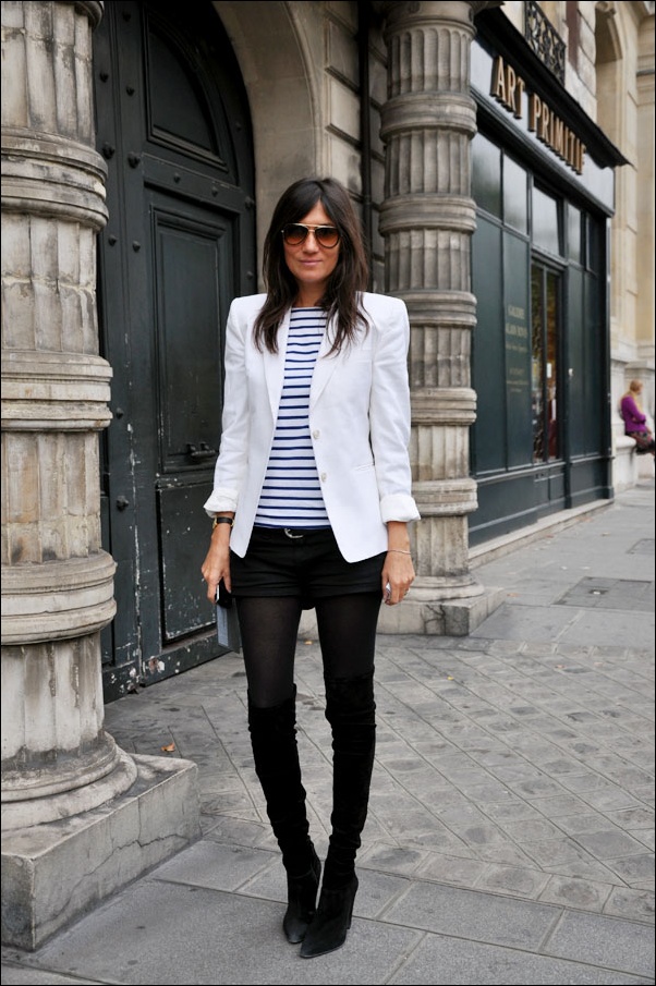 Emmanuelle siempre juega con colores como el negro, el blanco, el gris y el marino y pocas veces aporta color a sus looks.
