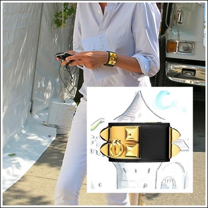 Su reloj, un Tank de Cartier. Pulsera le collier du chien de Hermès; un complemento joya que aporta personalidad a un look sencillo.